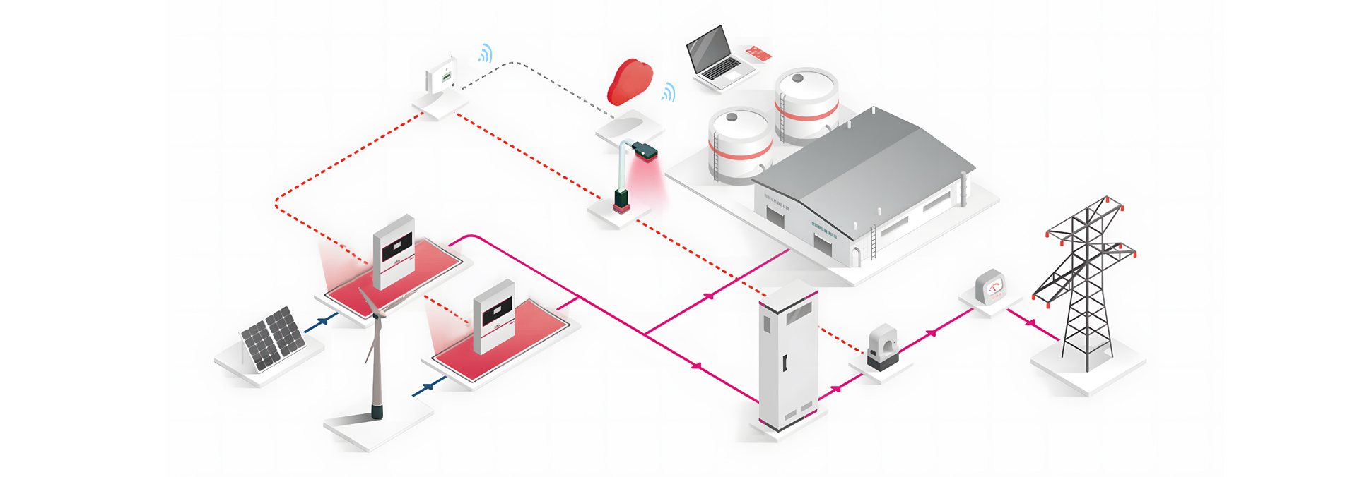 پشتیبانی از انرژی باد-خورشید و شبکه برق تجاری که مکمل یکدیگر هستند.
