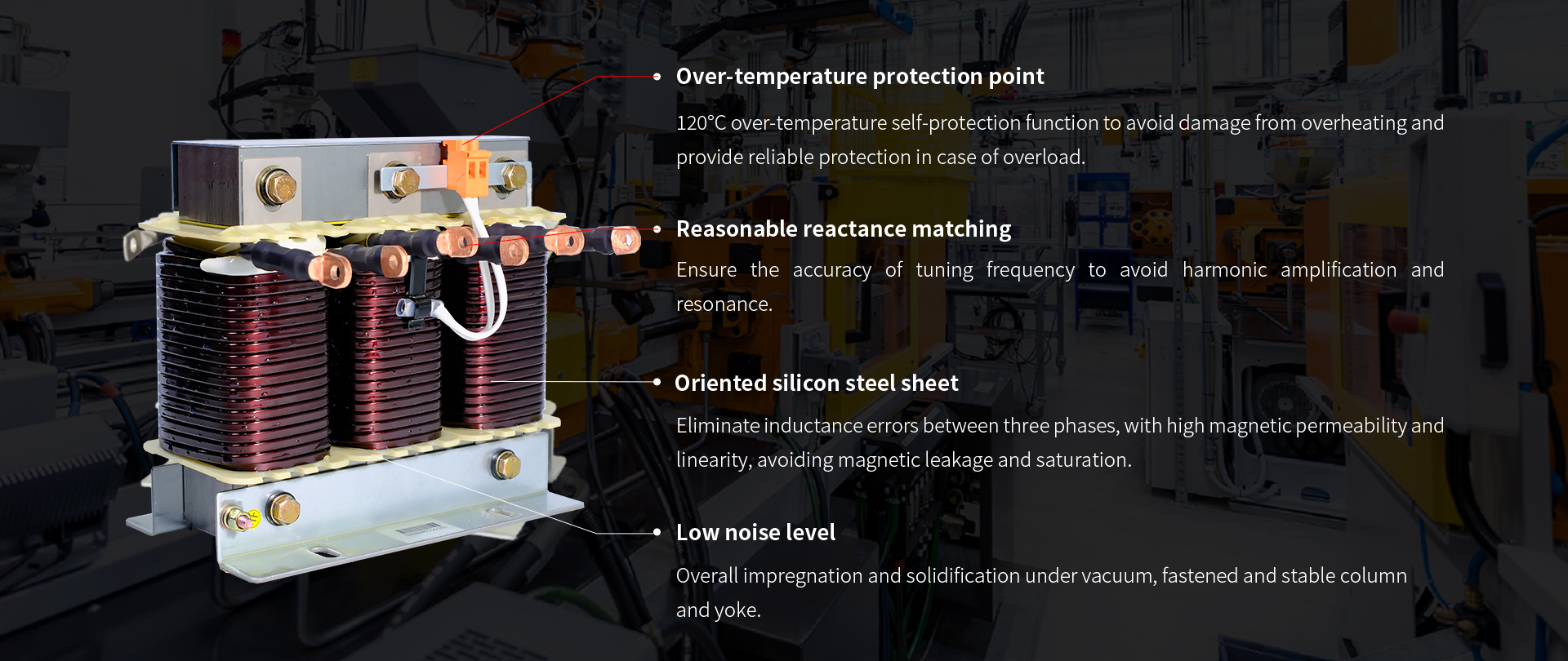 Filter reactors can effectively protect the capacitors, reduce overload caused by harmonics during compensation, and avoid the possibility of resonance with grid inductance.